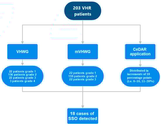 We performed logistic regression to assess the relationship between CeDAR scores, VHWG Grade, or modified VHWG Grade (predictor) and the likelihood of SSO (outcome, a binary yes/no outcome). Data analysis was performed using GraphPad PRISM (ver. 10.1.1, 2023) and SPSS (version 20, IBM). The statistical significance threshold was established at the 0.05 level (2-sided).