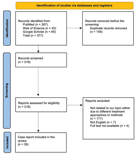 This review examines published studies on the use of extended alloplastic temporomandibular joints for jaw reconstruction. A comprehensive exploration of databases like PubMed, Web of Science, and Google Scholar using keywords, such as extended temporomandibular joint reconstruction, temporomandibular joint replacement, virtual surgical planning, computed tomography, and maximal interincisal opening, was performed to gather relevant literature. A comprehensive literature review was performed using three key databases: PubMed, Web of Science, and Google Scholar. Similar reviews in the field have also relied on these databases to ensure a robust selection of relevant studies. For instance, Zieliński et al. [6] conducted a systematic review that utilized these databases to explore the global prevalence of sleep bruxism and awake bruxism in pediatric and adult populations, while Mauro et al. [7] referenced the same databases to assess temporomandibular disorder management. By utilizing these databases, we aimed to ensure a diverse and comprehensive overview of the existing literature relevant to our research question. The selection of these databases was based on their unique strengths, which together facilitate a comprehensive approach to the literature search such as in the Mauro et al. study [7]. The inclusion criteria focused on reviews, clinical trials, and cohort studies with no time restrictions, while studies that were presented in a language other than English, had no full text available, or did not discuss alloplastic prosthesis in extended TMJ reconstructions were excluded. The acronym PICOS was used to answer this review question, “What are the uses of alloplastic prostheses in the extended reconstruction of TMJ?” PICOS stands for P = extended reconstruction of TMJ, I = Alloplastic prosthesis, C = Control group if applicable, and O = Outcomes. The search strategy was applied to PubMed, Google Scholar, and Web of Science without time restrictions. The search had no time-specific restrictions; the search period started in August 2024, and all papers were included until August 2024 with no time restrictions. Our review focused on all the relevant studies discussing extended alloplastic temporomandibular joint and their classifications, indications, contraindications, advantages, disadvantages, complications, virtual surgical planning (VSP), criteria for successful alloplastic devices, and the surgical approach. By using this process, all the papers discussing the utilization of alloplastic prostheses in the extended reconstruction of TMJ were obtained and included in our inclusion criteria. The studies that had poor methodological quality and insufficient data were excluded. Using the following search terms (extended alloplastic temporomandibular joint reconstruction, alloplastic temporomandibular joint replacement, total joint replacement, and total joint reconstruction), all papers discussing the utilization of alloplastic prostheses in the extended reconstruction of TMJ were gathered. In the initial stage, two reviewers (KM and BF) examined the titles and abstracts of the papers based on set criteria to choose articles for full reading. In the next stage, two reviewers (YA and KH) individually evaluated the selected articles based on the criteria for full reading. In case of any disagreement, discussion and consensus were reached to solve it, or a third reviewer (WM or SS) was consulted in cases of persistent conflict. The initial screening elicited 377 papers. After applying our inclusion criteria, the most relevant studies were selected and used in the current review. This review ultimately involved 36 papers discussing the use of extended alloplastic temporomandibular joints in the reconstruction of the temporomandibular joint. Figure 1 shows the study flowchart.