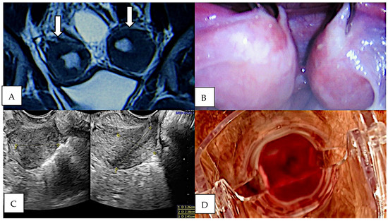 - Grimbizis, G.F.; Di Spiezio Sardo, A.; Saravelos, S.H.; Gordts, S.; Exacoustos, C.; Van Schoubroeck, D.; Bermejo, C.; Amso, N.N.; Nargund, G.; Timmerman, D.; et al. The Thessaloniki ESHRE/ESGE consensus on diagnosis of female genital anomalies. Hum. Reprod. 2016, 31, 2–7. [Google Scholar] [CrossRef]