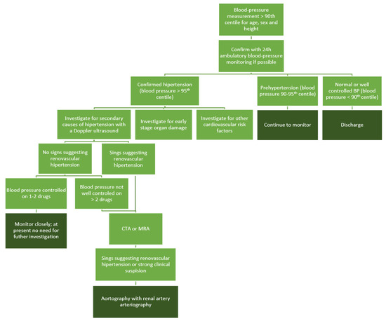 - Roebuck, D.J. Childhood hypertension: What does the radiologist contribute? Pediatr. Radiol. 2008, 38, 501–507. [Google Scholar] [CrossRef] [PubMed]