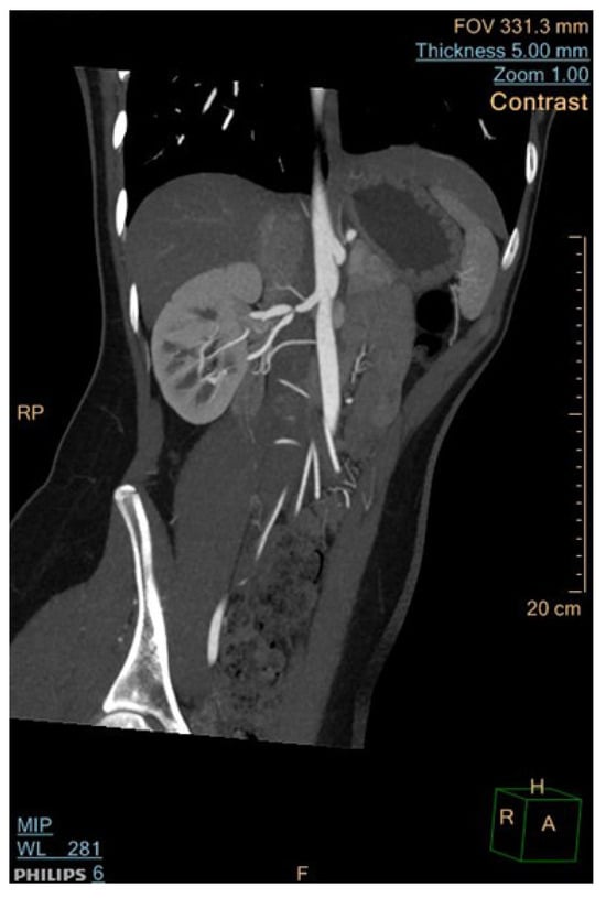 It remains the most effective non-invasive alternative to traditional angiography for diagnosing RAS and MAS and is particularly adept at detecting thin webs in FMD, which MRA might overlook [45]. The radiation risk associated with CTA can be reduced through the implementation of radiation minimization protocols [3,51]. CTA images recorded in our department are presented in Figure 6 and Figure 7.