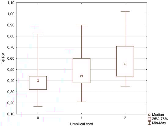- Murlewska, J.; Poszwa, P.; Sylwestrzak, O.; Respondek-Liberska, M.; Wood, D. The Presence of a Single Nuchal Cord in the Third Trimester May Not Affect Tei Index in LGA Fetuses. Int. J. Environ. Res. Public Health 2023, 20, 3778. [Google Scholar] [CrossRef] [PubMed] [PubMed Central]