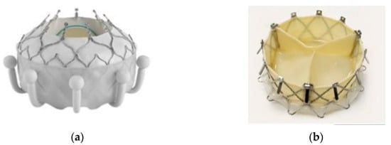 Figure 3. (a) Evoque valve (Edwards Lifesciences); (b) Gate System/Navigate valve (NaviGate Cardiac Structures Inc., Lake Forest, CA, USA) [30].