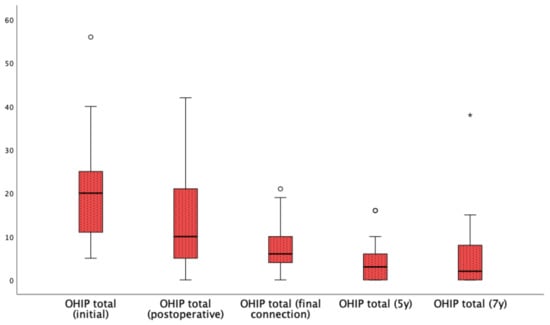 | A. | Total OHIP-14 | Initial | Postop | Final Connection | 3 Years Function | 5 Years Function | 7 Years Function |