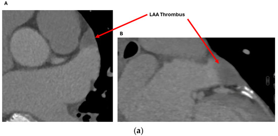 - Romero, J.; Husain, S.A.; Kelesidis, I.; Sanz, J.; Medina, H.M.; Garcia, M.J. Detection of Left Atrial Appendage Thrombus by Cardiac Computed Tomography in Patients with Atrial Fibrillation: A Meta-Analysis. Circ. Cardiovasc. Imaging 2013, 6, 185–194. [Google Scholar] [CrossRef] [PubMed]