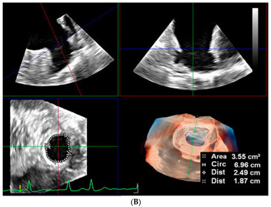Furthermore, 3D multi-planar reformat reconstruction enables full circumferential assessment of the LAA orifice and landing zone, thereby measuring the minimum and maximum diameters. Indeed, in a direct head-to-head comparison of 2D TOE with 3D TOE and with cardiac CT as a reference, 3D TOE was significantly more accurate than 2D TOE and comparable to CT [27,31,32]. Real-time 3D TOE with artificial intelligence capability has been shown to increase the accuracy, reproducibility, and efficiency of LAA assessment compared with 2D TOE and cardiac CT (Figure 14) [27]. However, to our knowledge, no direct head-to-head comparative study has evaluated the long-term outcomes of 3D TOE versus cardiac CT-guided LAAO in terms of device complications and stroke.