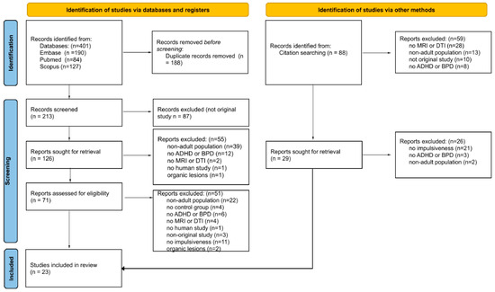 Franczak, Ł.; Podwalski, P.; Wysocki, P.; Dawidowski, B.; Jędrzejewski, A.; Jabłoński, M.; Samochowiec, J. Impulsivity in ADHD and Borderline Personality Disorder: A Systematic Review of Gray and White Matter Variations. J. Clin. Med. 2024, 13, 6906. https://doi.org/10.3390/jcm13226906