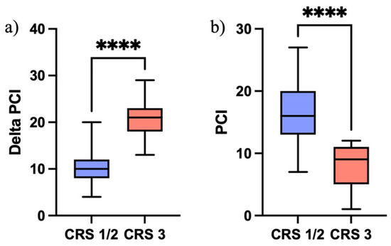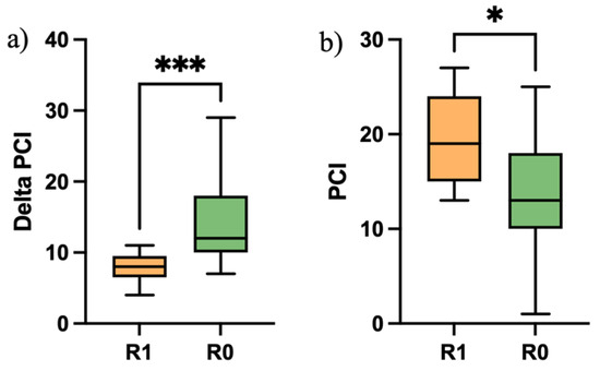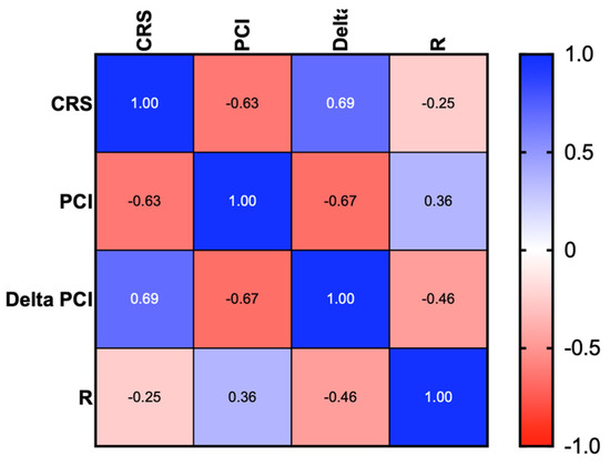 3.2. Correlation of PCI and Δ-PCI with Residual Disease and Histopathologic Response to Chemotherapy