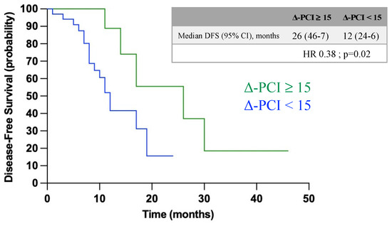 Spagnol, G.; Bigardi, S.; Zorzi, M.; Morotti, M.; Carollo, M.; Bruni, G.M.; De Tommasi, O.; Tamagnini, M.; Xhindoli, L.; Noventa, M.; et al. Δ-Peritoneal Cancer Index (Δ-PCI) to Predict Complete Cytoreduction and Histopathological Response to Neoadjuvant Chemotherapy in Ovarian Cancer. J. Clin. Med. 2024, 13, 6915. https://doi.org/10.3390/jcm13226915