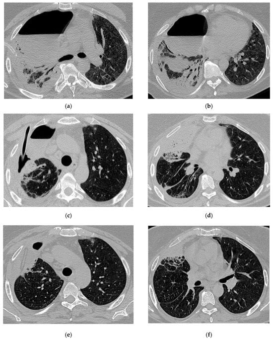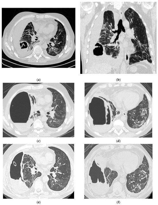 As noted by Beaucoté et al., predictive factors for the development of lung abscesses in COVID-19 patients couldn’t be identified as the proportion of patients with debilitating conditions such as diabetes mellitus, chronic respiratory disease, bacterial coinfection at ICU admission or immunosuppression including corticosteroid therapy were not different to patients without lung abscess []. Therefore, the issue of early detection of lung abscesses in order to limit their evolution by adapting the treatment (change in antibiotic therapy, insert intracavitary or endobronchial drainage) and prevent further complications such as pleural empyema, extension to other lung areas, or hemoptysis, becomes essential.