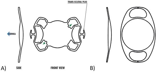 - Rossi, T.; Iannetta, D.; Romano, V.; Carlevale, C.; Forlini, M.; Telani, S.; Imburgia, A.; Mularoni, A.; Fontana, L.; Ripandelli, G. A novel intraocular lens designed for sutureless scleral fixation: Surgical series. Graefes Arch. Clin. Exp. Ophthalmol. 2021, 259, 257–262. [Google Scholar] [CrossRef] [PubMed]