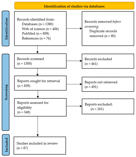 Two central data repositories, Web of Science and PubMed, which cover biomedical, healthcare, and interdisciplinary research and have a well-rounded collection of high-quality and high-impact, peer-reviewed articles, were searched for studies of interest using a broad range of keywords. The keywords used in our search include: “Computerized trail making test”, “Electronic trail making test”, “comparison of screening tools”, “Cognitive impairment”, “automated assessment”, “Automated assessment of cognition”, “Automated assessment of cognitive impairment”, “Automated assessment of cognitive dysfunction”, “Computerized assessment of cognition”, “Computerized assessment of cognitive impairment”, “Computerized assessment of cognitive dysfunction”, “Automatic cognitive screening”, “Convolutional neural networks to predict cognitive impairment”, “Convolutional neural networks to predict cognitive dysfunction”, “Convolutional neural networks to predict cognition”, “Deep learning to predict cognitive impairment”, “Deep learning to predict cognitive dysfunction”, “Deep learning to predict cognition”, “Machine learning to predict cognitive impairment”, “Machine learning to predict cognitive dysfunction”, “Machine learning to predict cognition”, “Artificial intelligence to predict cognition”, “Artificial intelligence to predict cognitive impairment”, “Artificial intelligence to predict cognitive dysfunction”, “Digital cognitive assessment”, and “Computerized cognitive testing”. Relevant studies were retrieved and selected for this review based on these keywords and date ranges (January 2000–June 2024). Only articles published in the English language were considered. The retrieved articles were screened based on the titles, abstracts, and availability of full text of articles, and duplicates were removed. The references of the included articles were consulted in some cases to strengthen and support the objective of this article. As shown in Figure 1, the final number of articles included in this study is 87 research papers.