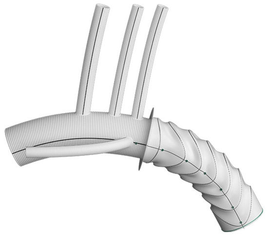 - Shrestha, M.; Kaufeld, T.; Beckmann, E.; Fleissner, F.; Umminger, J.; Abd Alhadi, F.; Boethig, D.; Krueger, H.; Haverich, A.; Martens, A. Total Aortic Arch Replacement with a Novel 4-Branched Frozen Elephant Trunk Prosthesis: Single-Center Results of the First 100 Patients. J. Thorac. Cardiovasc. Surg. 2016, 152, 148–159.e1. [Google Scholar] [CrossRef]