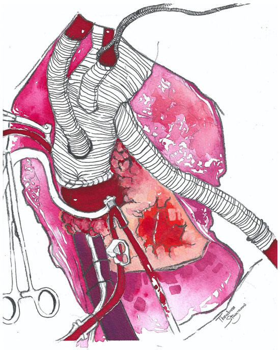 Though this technique has been criticized as time consuming, requiring a second incision, being anatomically more complex, and potentially associated with various complications, such as a brachial plexus injury, our experience has shown that in hemodynamically stable patients, it seems to be relatively safe and does not necessarily prolong an operation. In cases where the tissue quality of the innominate artery is acceptable, the cannulation of the innominate may also be considered. Another option that is often preferred due to its convenience and ease of establishment is the cannulation of the femoral artery. It may also be employed in cases with hemodynamic instability requiring urgent mechanical support, though it has been associated with higher rates of postoperative transient neurological dysfunction, as it cannot properly guarantee antegrade cerebral perfusion. Venous drainage is usually accomplished via a two-stage venous cannula in the right atrium, while a vent within the right superior pulmonary artery is used as well [13].