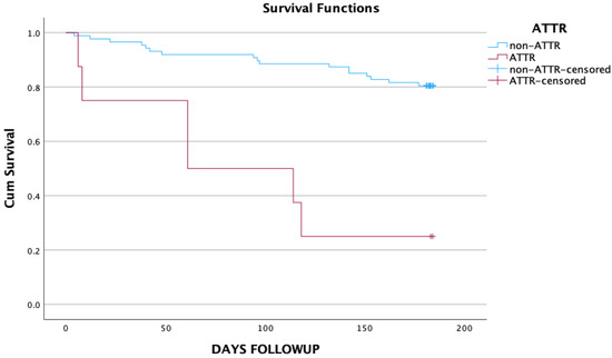Kaplan–Meier curves depicting overall survival in ATTR and non-ATTR groups. ATTR: transthyretin amyloid cardiomyopathy.