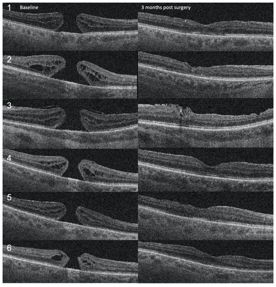 OCT follow-up of the 6 patients from baseline to 3 months post-surgery.