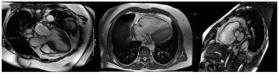 - Patel, A.R.; Kramer, C.M. Role of Cardiac Magnetic Resonance in the Diagnosis and Prognosis of Nonischemic Cardiomyopathy. JACC Cardiovasc. Imaging 2017, 10 Pt A, 1180–1193. [Google Scholar] [CrossRef]