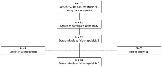 - Benucci, M.; Bardelli, M.; Cazzato, M.; Laurino, E.; Bartoli, F.; Damiani, A.; Li Gobbi, F.; Panaccione, A.; Di Cato, L.; Niccoli, L.; et al. ReLiFiRa (Real Life Filgotinib in Rheumatoid Arthritis): Retrospective Study of Efficacy and Safety in Common Clinical Practice. J. Pers. Med. 2023, 13, 1303. [Google Scholar] [CrossRef] [PubMed]