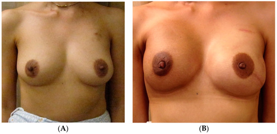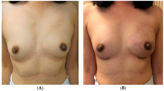 The following discussion highlights the key findings and outcomes of the articles included in Table 1, as well as clinical cases from the senior author’s practice (Figure 2, Figure 3, Figure 4, Figure 5, Figure 6, Figure 7 and Figure 8) that relate to each section, starting with implant-based reconstruction in Section 4.1, followed by a focus on autologous reconstruction in Section 4.2.