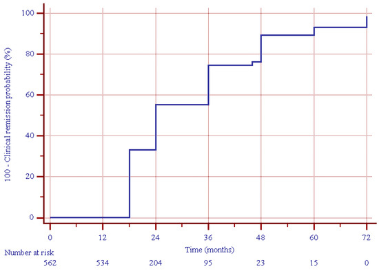 Estimated cumulative clinical remission probability during follow-up in the study group.