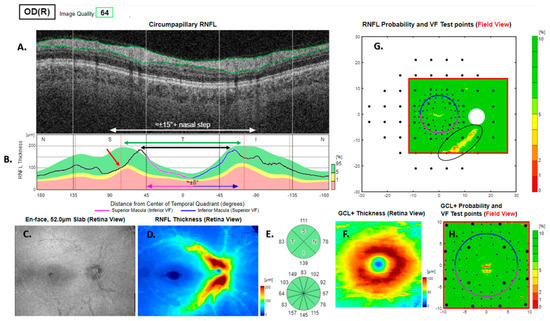 - Leal-Fonseca, M.; Rebolleda, G.; Oblanca, N.; Moreno-Montañes, J.; Muñoz-Negrete, F.J. A comparison of false positives in retinal nerve fiber layer, optic nerve head and macular ganglion cell-inner plexiform layer from two spectral-domain optical coherence tomography devices. Graefe’s Arch. Clin. Exp. Ophthalmol. 2014, 252, 321–330. [Google Scholar] [CrossRef] [PubMed]