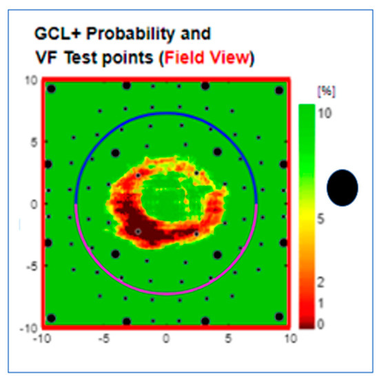 Coincidence of RNFL- and GC-IPL-based visual-field projected tissue defect alert.