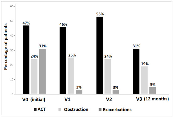 | Symptomatic patients (ACT > 20), n = 59 | 31 (52.5) | |