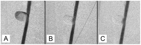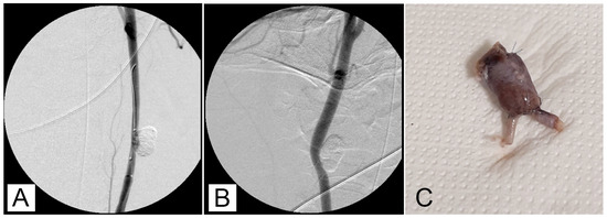 - Suh, D.C.; Kim, K.S.; Lim, S.M.; Shi, H.B.; Choi, C.G.; Lee, H.K.; Seo, D.M. Technical feasibility of embolizing aneurysms with glue (N-butyl 2-cyanoacrylate): Experimental study in rabbits. AJNR Am. J. Neuroradiol. 2003, 24, 1532–1539. [Google Scholar] [PubMed] [PubMed Central]