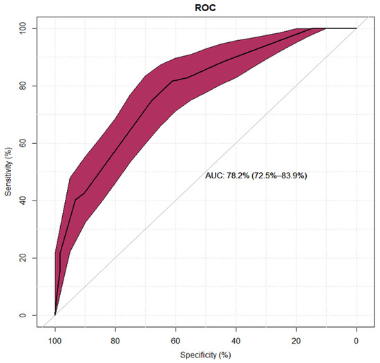 For quantitative traits, due to the non-normal distribution in at least one group, the non-parametric Kruskall–Wallis (KW) test was used. For qualitative variables, statistical analysis was performed using a non-parametric test of independence x2. Linear model with a logit binding function was used to evaluate the model for membership in the low-risk group (group I). Results are presented as odds ratio with 95% confidence interval. Multivariate modeling was performed using a stepwise backward method, manually including age and gender as potential clinically relevant confounding variables in the model. Calculations were performed using the R language in the RStudio software (PBC, Boston, MA, USA. http://www.posit.co/). A p < 0.05 was considered statistically significant.
