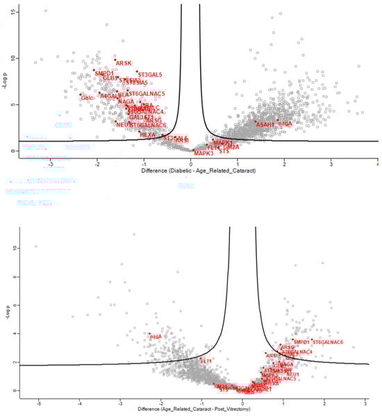 4], is to investigate the role of glycolipid and glycosphingolipid pathways in age-related cataract formation, compared to other types of cataract, i.e., diabetic and post-vitrectomy cataract. By comprehensively examining alterations of these specific pathways in lenses with cataract, we aimed to uncover novel insights into the molecular mechanisms driving age-related lens opacification.