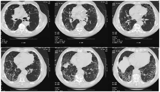 - Travis, W.D.; Costabel, U.; Hansell, D.M.; King, T.E., Jr.; Lynch, D.A.; Nicholson, A.G.; Ryerson, C.J.; Ryu, J.H.; Selman, M.; Wells, A.U.; et al. An official American Thoracic Society/European Respiratory Society statement: Update of the international multidisciplinary classification of the idiopathic interstitial pneumonias. Am. J. Respir. Crit. Care Med. 2013, 188, 733–748. [Google Scholar] [CrossRef]