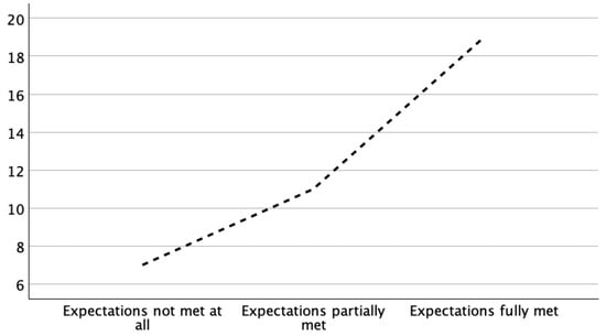 Regarding the fulfillment of their personal expectations regarding their return to skiing, 19 patients (50%) stated that their expectations were fully met; of these patients, 18 (47.3%) skied regularly (8 male; 11 female). The mean age of these patients was 44.8 years. In total, 11 (29.7%) patients stated that their expectations were partially met, and 7 (18.4%) patients stated that they were not met at all (Figure 3).