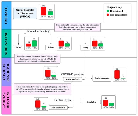 Decision tree analysis (CHAID method): key features influencing successful resuscitation are adrenaline dose, COVID-19 pandemic and the type of rhythm.