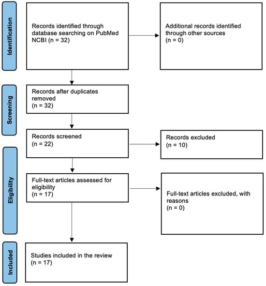 The initial step involved screening the titles of the identified studies to assess their relevance to the research objectives. An initial systematic search of the PubMed database yielded 32 studies that matched the broad search criteria. Subsequently, abstracts of the papers were carefully reviewed to ensure they met the inclusion criteria, which included studies on the clinical presentation, diagnostic methods, surgical interventions, and autopsy findings associated with Rapunzel syndrome, as well as the forensic aspects of deaths related to the syndrome. After screening the titles and abstracts, 17 studies were selected for full-text review. Special attention was paid to those studies that reported cases of fatal outcomes, with particular focus on autopsy findings and forensic investigations, in order to gain insights into the causes of death and the role of post-mortem examinations in diagnosing this rare condition.