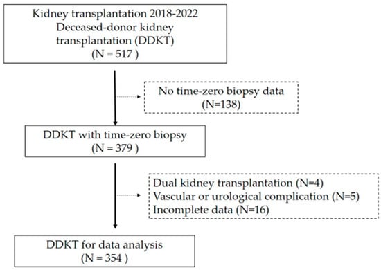 - Maia, L.F.; Lasmar, M.F.; Fabreti-Oliveira, R.A.; Nascimento, E. Effect of delayed graft function on the outcome and allograft survival of kidney transplanted patients from a deceased donor. Transpl. Proc. 2021, 53, 1470–1476. [Google Scholar] [CrossRef]