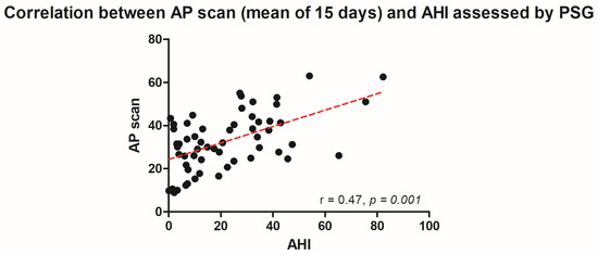 Scatter plot showing the correlation between the device-derived AP scan® and the apnea–hypopnea index.