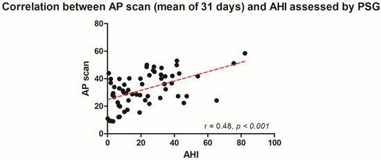 - There was a good correlation between the PSG-derived AHI and the AP scan® in the overall cohort with a moderate overestimation by the AP scan®.