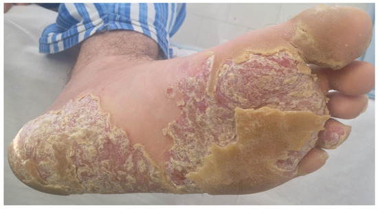 Palms and soles can be affected as part of the generalized form of psoriasis or can be exclusively affected as palmo-plantar psoriasis, representing 3–4% of all cases. Palmo-plantar psoriasis is more common amongst manual laborers, farmers, and housewives, taking into consideration that repetitive trauma may serve as a potential trigger [6]. Exacerbations of lesions are determined by seasonal changes and palmo-plantar psoriasis is frequently associated with psoriatic arthritis and nail psoriasis [7].