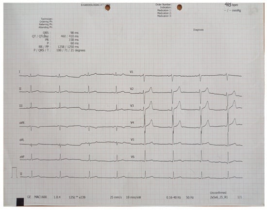 In accordance with previous case reports, our patient was a young man; he demonstrated elevated levels of cardiac enzymes without there being any significant findings in the ECG and echocardiography. We would expect tachycardia in such a patient, with myocarditis, fever, and diarrhea. However, sinus bradycardia could be attributed to a combination of the direct inflammatory effects of myocarditis on the sinoatrial node, autonomic imbalance, and the possible influence of concurrent medication. Specifically, myocarditis could have directly affected the conduction system of the heart, including the sinoatrial node, leading to arrhythmias such as sinus bradycardia. This might have occurred due to localized myocardial inflammation or fibrosis in areas involved in impulse generation and conduction [32]. Moreover, the infection and subsequent systemic inflammation might have caused an imbalance in the autonomic nervous system, with excessive vagal tone predominating over sympathetic activity [33]. This is particularly plausible in Campylobacter jejuni-related infections, as molecular mimicry and autoimmune mechanisms can sometimes trigger atypical autonomic responses. Another significant reason may be that our patient was physically fit and had a naturally low resting heart rate, and thus, the fever and systemic inflammation might not have been sufficient to override their baseline sinus bradycardia [34]. Finally, our patient had a history of anxiety disorder and was receiving fluvoxamine. Selective serotonin reuptake inhibitors (SSRIs), including fluvoxamine, are known to occasionally cause bradycardia through vagal stimulation or other mechanisms [35,36]. This is a finding also highlighting the complexity of myocarditis presentations and the importance of comprehensive diagnostic evaluation in such cases.