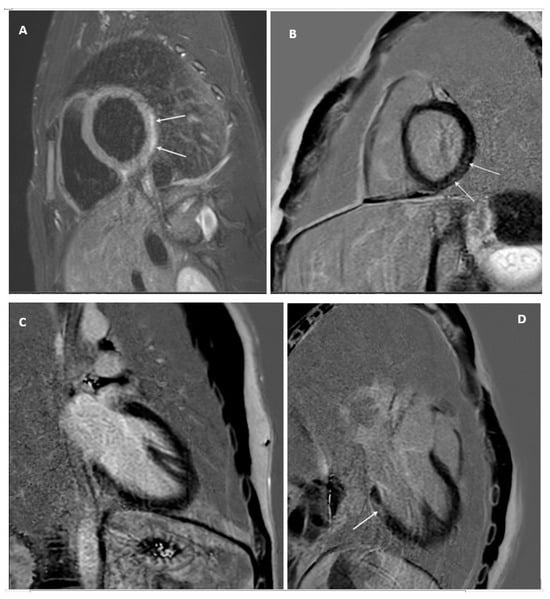 - Joudar, I.; Aichouni, N.; Nasri, S.; Kamaoui, I.; Skiker, I. Diagnostic criteria for myocarditis on cardiac magnetic resonance imaging: An educational review. Ann. Med. Surg. 2023, 85, 3960–3964. [Google Scholar] [CrossRef]