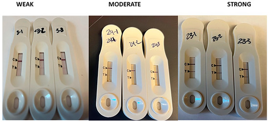 Briefly, cards were placed horizontally on the laboratory bench, 100 µL of urine was added to the sample wells, and the results were interpreted within 4 min. The concentration of uNGAL was assessed using the manufacturer’s sensitivity benchmarks to detect uNGAL levels. A weak band was interpreted as 50 ng/mL, a moderate band as 100 ng/mL, and a strong band as 1000 ng/mL, which was considered a positive test result. A negative outcome was indicated by the absence of an NGAL band on the testing card. These clinical diagnostic measurements were performed in triplicate.