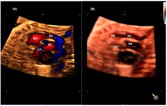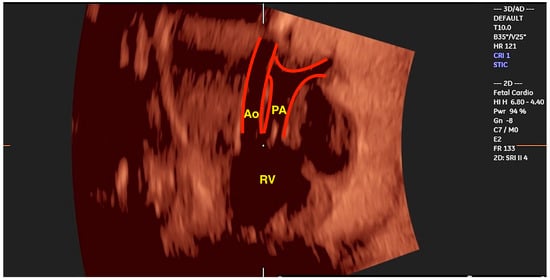 - Karmegaraj, B.; Kumar, S.; Srimurugan, B.; Sudhakar, A.; Simpson, J.M.; Vaidyanathan, B. 3D/4D spatiotemporal image correlation (STIC) fetal echocardiography provides incremental benefit over 2D fetal echocardiography in predicting postnatal surgical approach in double-outlet right ventricle. Ultrasound Obstet. Gynecol. 2021, 57, 423–430. [Google Scholar] [CrossRef]