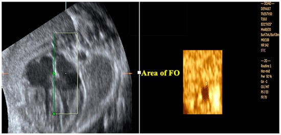 - Pontes, A.L.S.; Chagas, C.C.; Bravo-Valenzuela, N.J.; Peixoto, A.B.; Mappa, I.; Rizzo, G.; Tonni, G.; Araujo Júnior, E. Fetal heart foramen ovale area by three-dimensional ultrasound using stic in the rendering mode: Reference range and applicability in congenital heart diseases. Int. J. Cardiovasc. Imaging 2023, 39, 531–539. [Google Scholar] [CrossRef]
