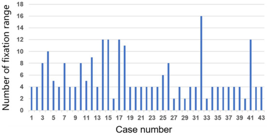 Fixation range with respect to each case. Horizontal axis: case number; Vertical axis: number of fixation range.