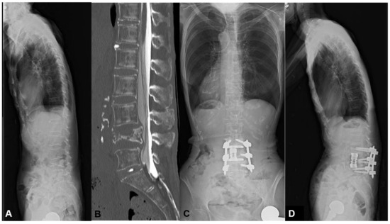 - Isogai, N.; Hosogane, N.; Funao, H.; Nojiri, K.; Suzuki, S.; Okada, E.; Ueda, S.; Hikata, T.; Shiono, Y.; Watanabe, K.; et al. The Surgical Outcomes of Spinal Fusion for Osteoporotic Vertebral Fractures in the Lower Lumbar Spine with a Neurological Deficit. Spine Surg. Relat. Res. 2020, 4, 199–207. [Google Scholar] [PubMed]