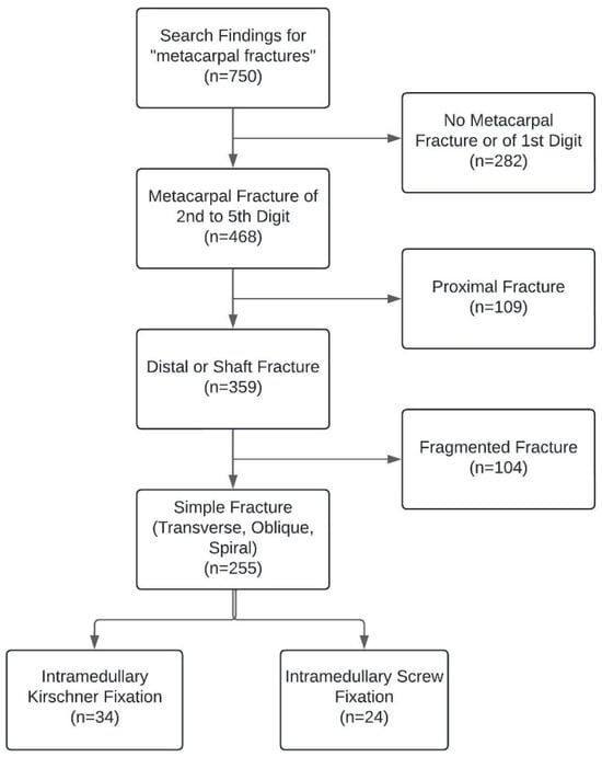 Patients were identified using search terms related to metacarpal fractures in radiology department records.