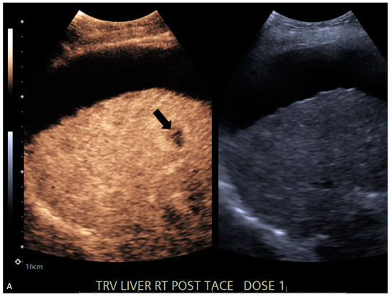 - Shaw, C.M.; Eisenbrey, J.R.; Lyshchik, A.; O’Kane, P.L.; Merton, D.A.; Machado, P.; Pino, L.; Brown, D.B.; Forsberg, F. Contrast-enhanced ultrasound evaluation of residual blood flow to hepatocellular carcinoma after treatment with transarterial chemoembolization using drug-eluting beads: A prospective study. J. Ultrasound Med. 2015, 34, 859–867. [Google Scholar] [CrossRef]