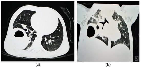 - Odev, K.; Guler, İ.; Altinok, T.; Pekcan, S.; Batur, A.; Ozbiner, H. Cystic and Cavitary Lung Lesions in Children: Radiologic Findings with Pathologic Correlation. J. Clin. Imaging Sci. 2013, 3, 60. [Google Scholar] [CrossRef] [PubMed]