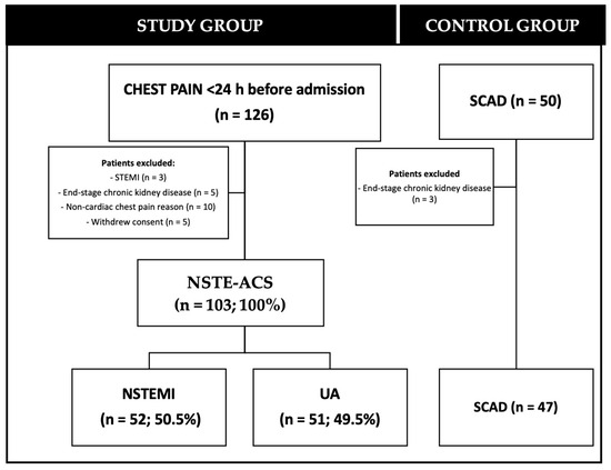 | Variable | Stable Coronary Artery Disease (n = 47) | NSTE-ACS (n = 103) | p-Value | |