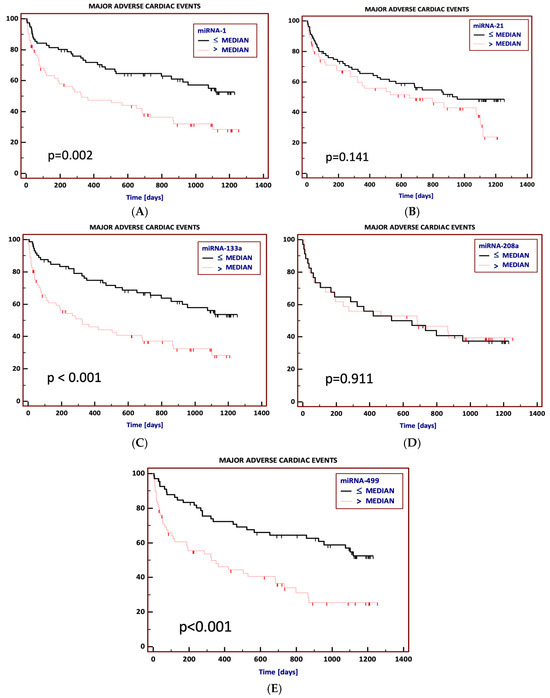 Miśkowiec, D.; Szymczyk, E.; Wejner-Mik, P.; Michalski, B.; Lipiec, P.; Simiera, M.; Kupczyńska, K.; Kasprzak, J.D. Elevated miRNA-499 Levels in Early Phase of Non-ST Elevation Acute Coronary Syndromes Predict Increased Long-Term Risk of Major Adverse Cardiac Events. J. Clin. Med. 2024, 13, 7803. https://doi.org/10.3390/jcm13247803